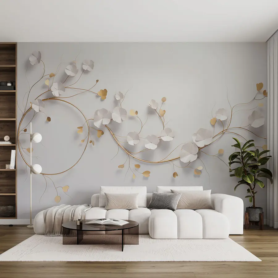 16.32 €9.79 €Papier peint Arbre avec des fleurs et des feuilles blanches