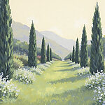 Papier peint Peinture d’un paysage avec des arbres et des fleurs