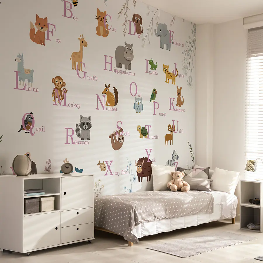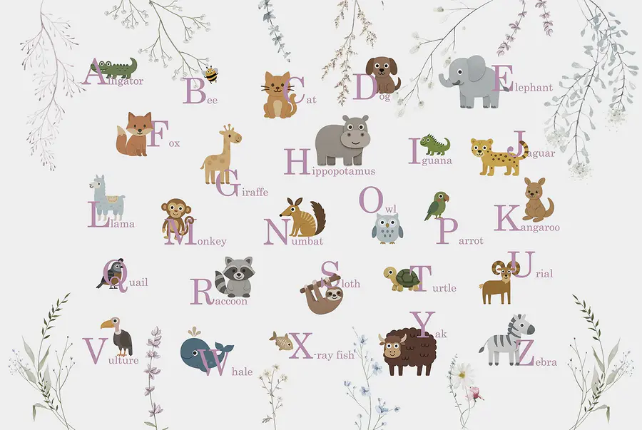 Papier peint Papier peint avec des animaux et des lettres
