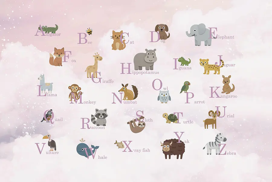 Papier peint Groupe d’animaux avec des lettres