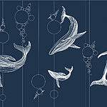 Papier peint Groupe de baleines et bulles