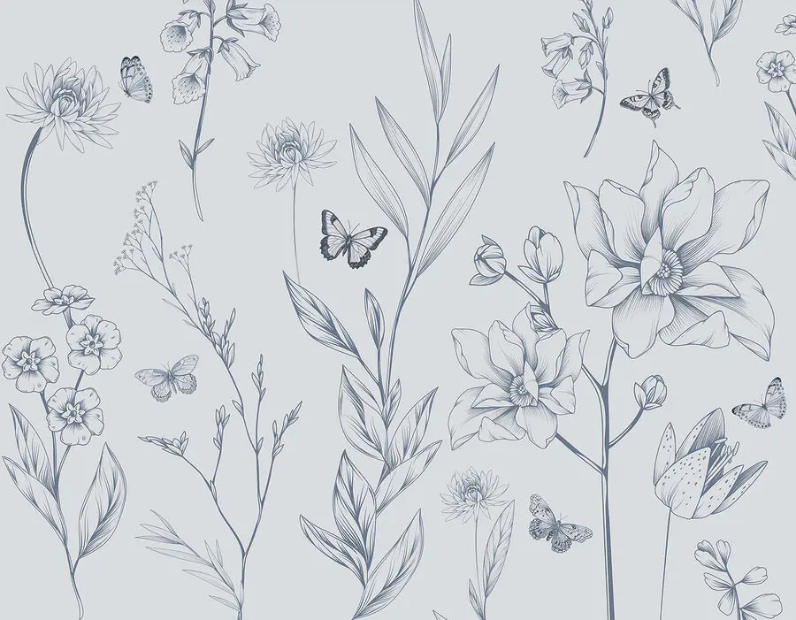 Papier peint Dessin de fleurs et de papillons
