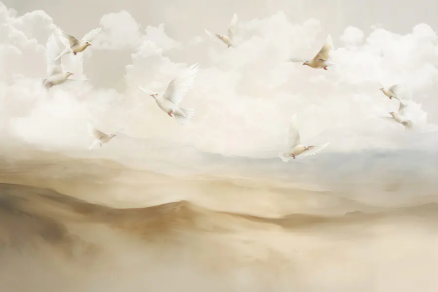 Papier peint Groupe d’oiseaux blancs volant dans le ciel