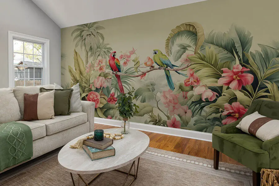 Apportez une touche de bonheur tropical dans n'importe quelle pièce avec cette peinture murale vibrante représentant un couple de charmants perroquets perchés sur une branche au milieu d'une mer de fleurs époustouflantes. Imaginez la joie qu'elle vous procurera, comme des mini-vacances sur votre mur ! Ces couleurs ? Elles chantent pratiquement une chanson d'amour à la nature. Elles sont parfaites pour créer une atmosphère accueillante où les amis peuvent s'attarder autour d'un café, partageant des histoires au milieu de la beauté. Que ce soit dans un coin confortable ou au cœur de votre espace de vie, il ajoute une touche d'élégance vivante. Transformez votre mur en un paradis luxuriant où chaque coup d'œil ressemble à une évasion tropicale. Qui ne voudrait pas d'un peu de nature sauvage chez soi ?