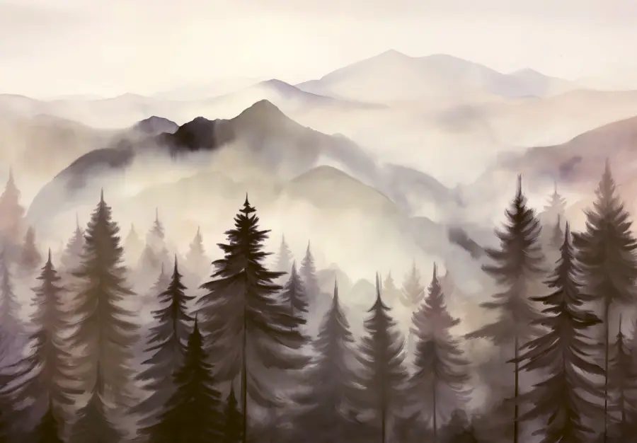15.50 €9.30 €Papier peint Paysage de montagnes avec arbres et brouillard