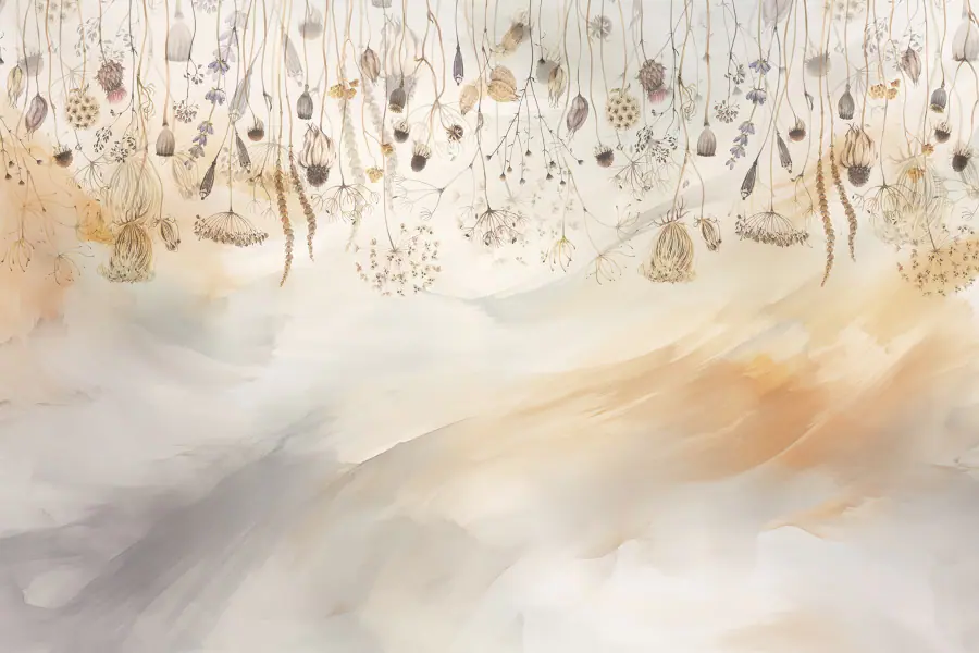 Papier peint Peinture de fleurs et de plantes séchées