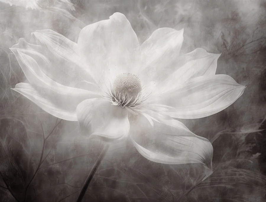 Papier peint Fleur blanche avec un centre noir