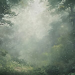 Papier peint Forêt brumeuse avec arbres et plantes