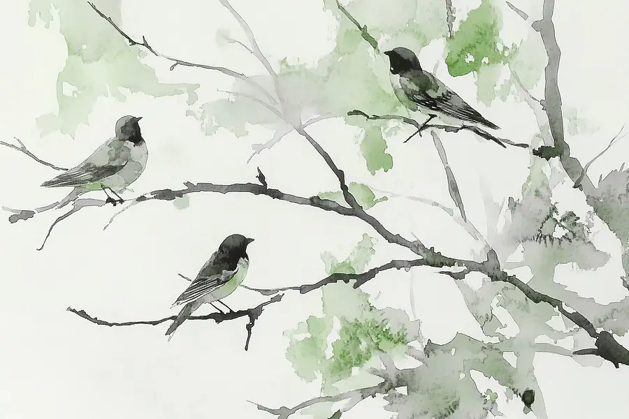 Papier peint Groupe d’oiseaux assis sur une branche d’arbre