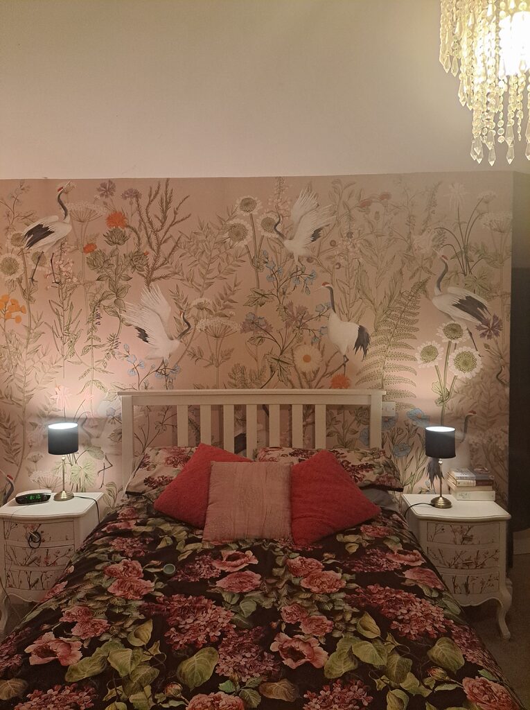 Identique à la photo, très contente de mon premier achat. Facilité de pose, j’ai posé le papier peint seule, un petit conseil suivez bien la recommandation de rajouter 10cm supplémentaires sur la hauteur et la largeur très pratique pour bien poser le papier peint. Ravie du résultat. Merci tapeko !