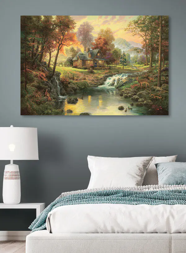 25.00 €15.00 €Tableaux Peinture d’une cabane en rondins avec un pont au-dessus d’une rivière