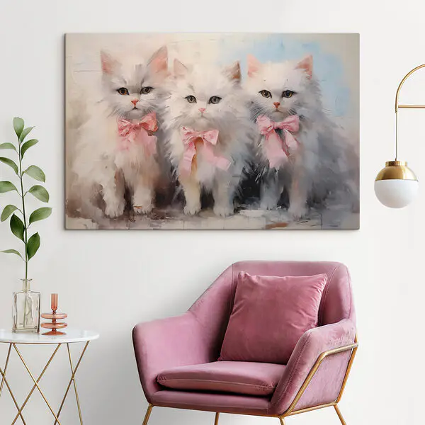 25.00 €15.00 €Tableaux Groupe de chats blancs avec des nœuds roses