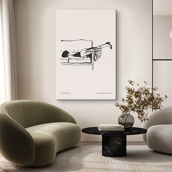 Tableaux Tableaux Dessin d'une femme allongée sur un banc (UGS : s37422)
