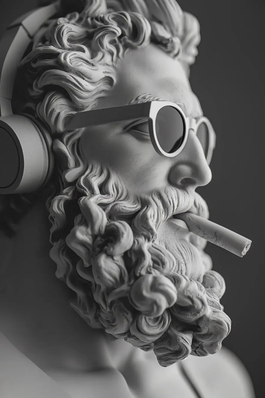 25.00 €15.00 €Tableaux Une statue d’un homme avec des écouteurs et un chewing-gum