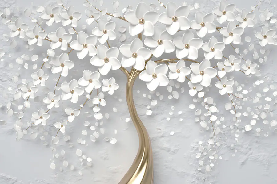 Tableaux Un arbre avec des fleurs et des feuilles blanches