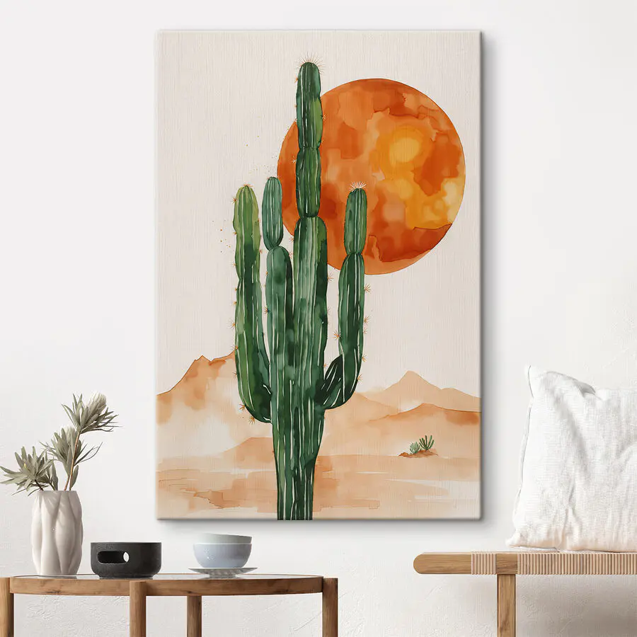 Tableaux Peinture d’un cactus et d’un soleil