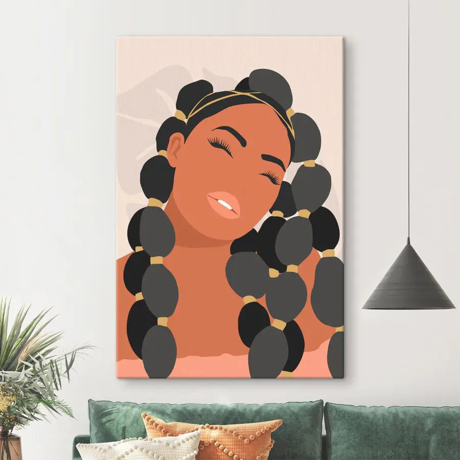 Imaginez une touche d'élégance et de sérénité dans votre chambre : cette toile "Femme aux cheveux tressés" est exactement ce qu'il vous faut. Cette toile "Femme aux cheveux tressés" est exactement ce qu'il vous faut. Elle dégage une atmosphère douce, aussi apaisante qu'un dimanche paresseux. Ces tresses audacieuses ressortent, dansant sur un fond doux comme si elles racontaient une histoire silencieuse. Parfait pour tous ceux qui souhaitent apporter une touche de style et d'âme à leur espace. Imaginez-la accrochée à votre mur, invitant à des conversations ou à une évasion tranquille. C'est comme si vous fermiez les yeux sur un bon livre ou un après-midi de rêve au café. Un bonheur, n'est-ce pas ?