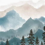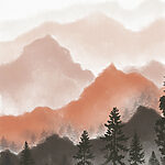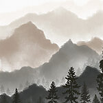 Tableaux Un paysage de montagnes et d’arbres