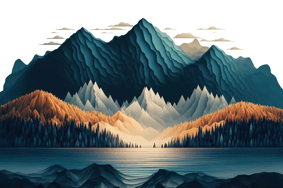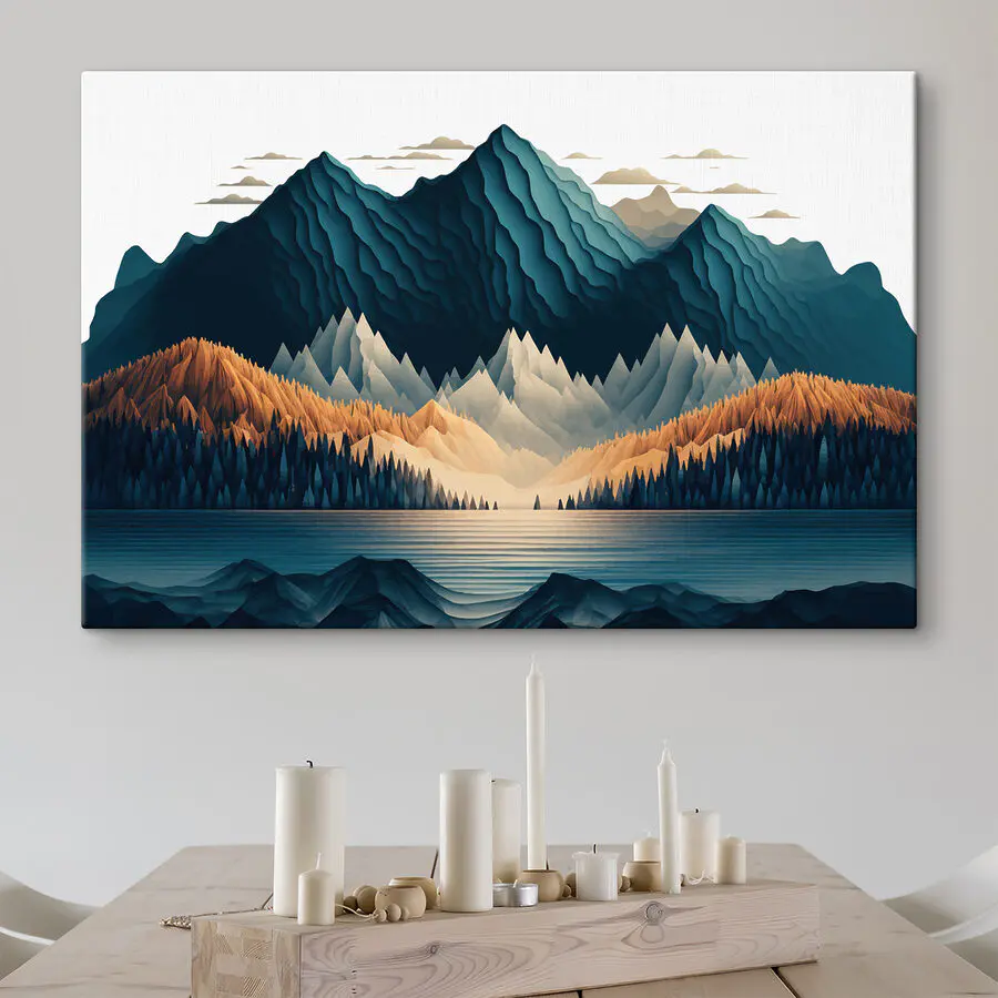 Tableaux Une chaîne de montagnes avec des arbres et un lac