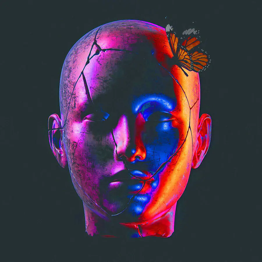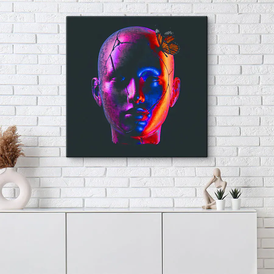 Tableaux Tête cassée avec un papillon dessus