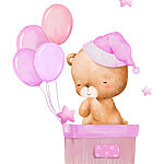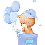 Tableaux Un ours en peluche dans une boîte avec des ballons