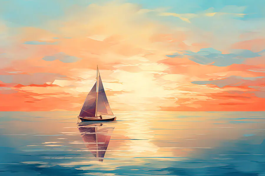 Laissez-vous emporter par cette charmante impression sur toile d'un voilier glissant doucement sur des eaux tranquilles. Les pastels doux du ciel capturent les vibrations d'un coucher de soleil de rêve, donnant l'impression d'une mini-vacance dans votre salon. Imaginez-vous en train de siroter un thé à côté de cette œuvre d'art, laissant le calme vous envahir après une longue journée. C'est comme un câlin de bonheur sur vos murs ! Parfait pour n'importe quel espace - salles de bain avec vue sur la mer, coins lecture confortables, ou ce mur vide dont vous ne savez que faire. Laissez-le vous inspirer des rêves de bord de mer et peut-être un peu d'envie de voyager. Après tout, qui n'a pas envie de prendre le large de temps en temps ?
