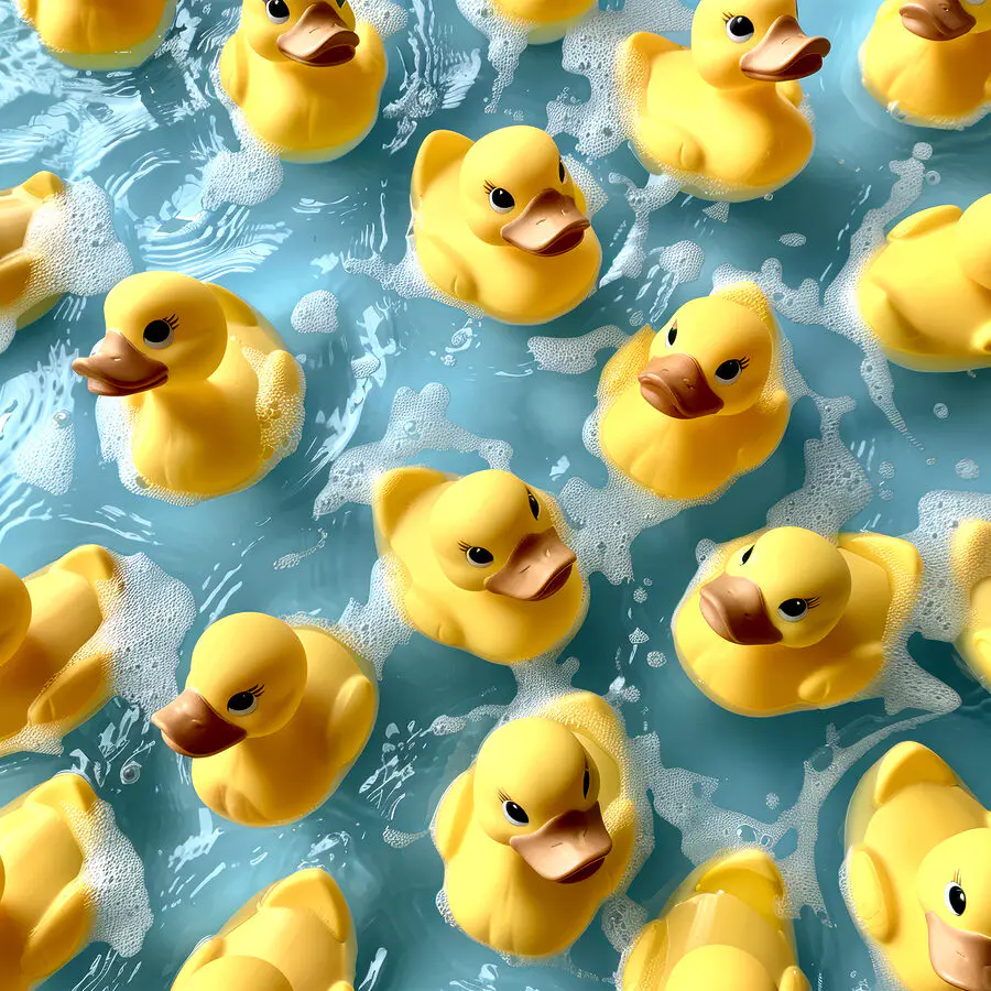 Tableaux Groupe de canards en caoutchouc jaunes dans une piscine