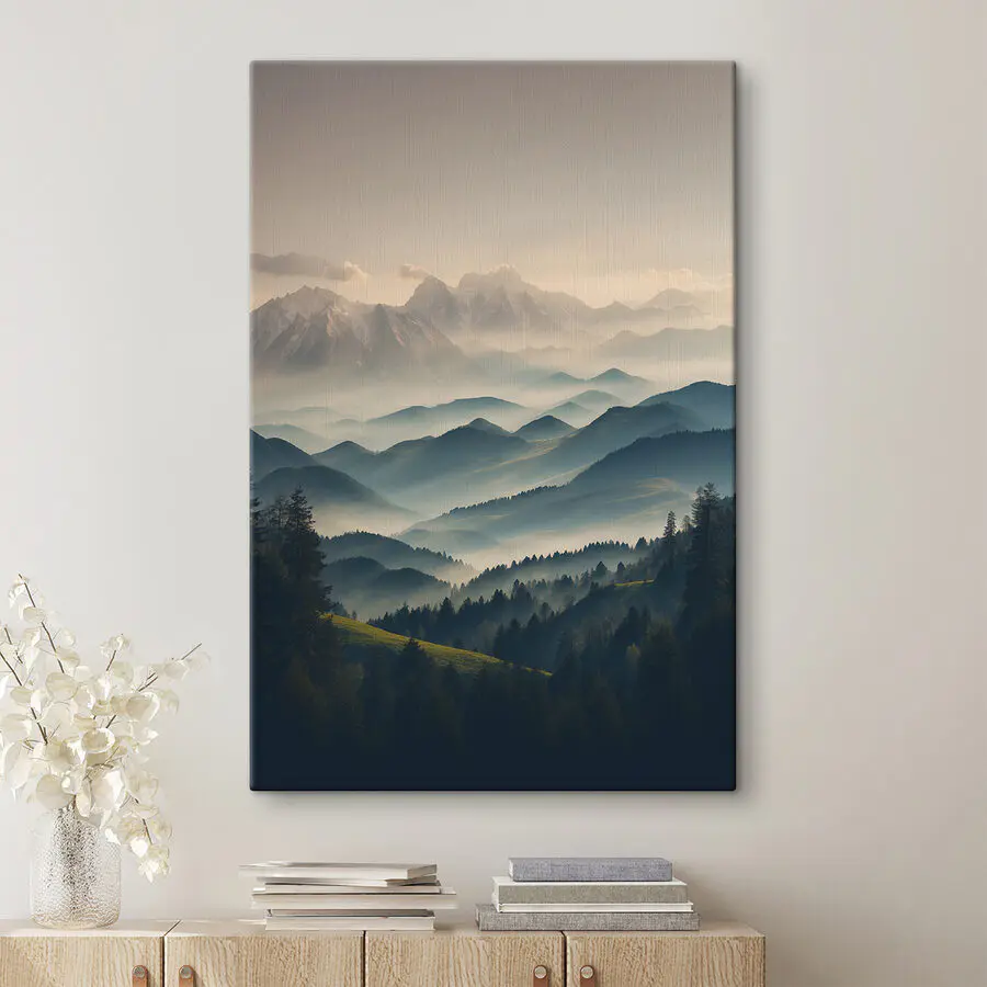 Imaginez que vous vous détendiez chez vous avec une vue impressionnante sur des chaînes de montagnes brumeuses qui s'étendent au loin, sans même quitter votre canapé. Cette superbe impression sur toile, "Chaîne de montagnes avec arbres et brouillard", capture la beauté sereine de la nature. Elle vous transportera dans un monde de forêts imposantes et d'horizons brumeux chaque fois que vous aurez besoin de souffler un peu. Parfaitement adaptée aux amoureux de la forêt et des arbres ou à tous ceux qui se réjouissent de la simplicité de la nature, cette œuvre allie chaleur et tranquillité, imprégnant la pièce d'une atmosphère calme. C'est comme si vous aviez une fenêtre sur une aventure sans fin directement sur votre mur. Imaginez que vous sirotiez un café, que vous vous perdiez dans les couches brumeuses et que vous vous sentiez un peu plus enraciné chaque jour. Accrochez-le dans votre salon, votre bureau, voire dans la salle de bains - il ne manquera pas de rehausser votre espace ! Une jolie touche d'extérieur pour l'intérieur.