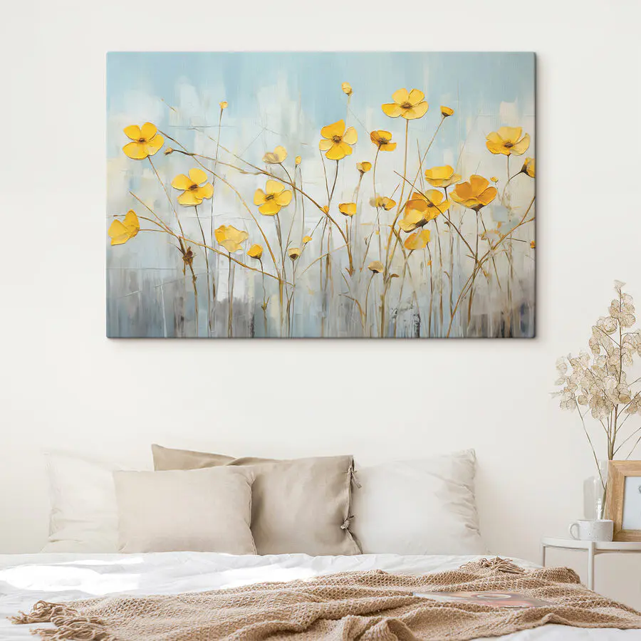 Illuminez n'importe quelle pièce avec cette impression sur toile vibrante de fleurs jaunes joyeuses dansant sur une douce toile de fond bleue. C'est comme une petite tranche de soleil apportée à l'intérieur, qui met instantanément de l'ambiance. Imaginez cette pièce accrochée dans un salon confortable ou une chambre à coucher sereine, apportant un air de fraîcheur qui rend les journées les plus ternes un peu plus lumineuses. Ces fleurs ont l'air de se balancer dans une brise légère, invitant à des sourires et à des souvenirs chaleureux. Parfaite pour tous ceux qui pensent que la maison mérite une touche de beauté naturelle, cette impression offre une évasion délicieuse, directement sur votre mur.