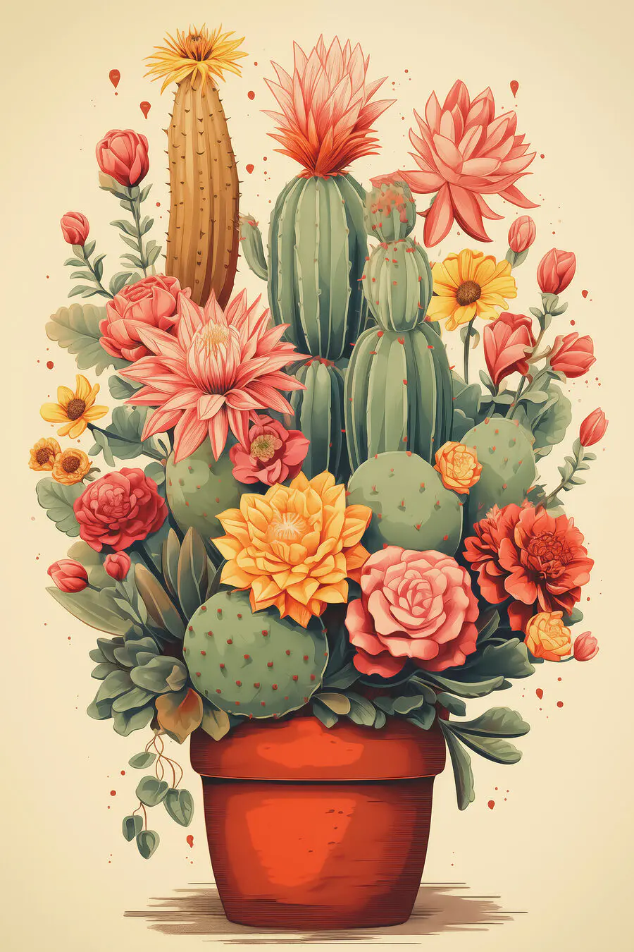 Tableaux Cactus et fleurs dans un pot