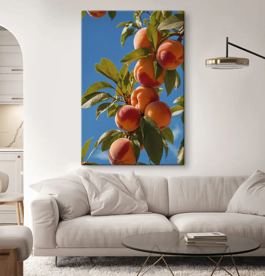 Tableaux Groupe de pêches sur un arbre