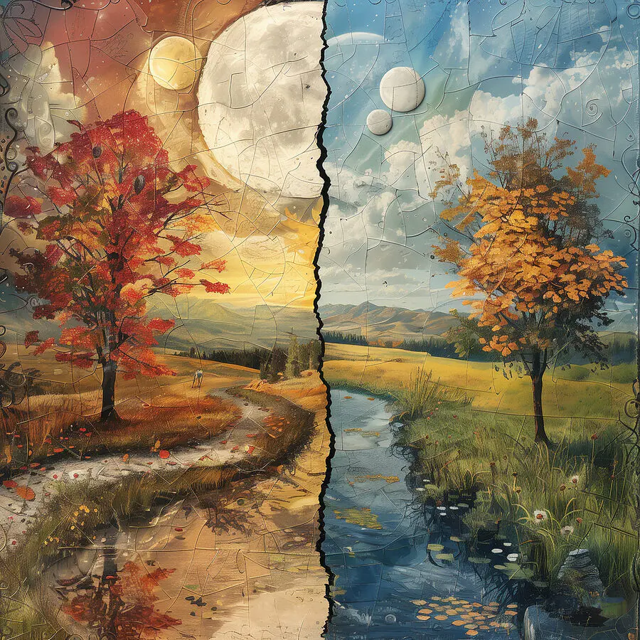 Tableaux Puzzle d’un paysage avec des arbres et une rivière