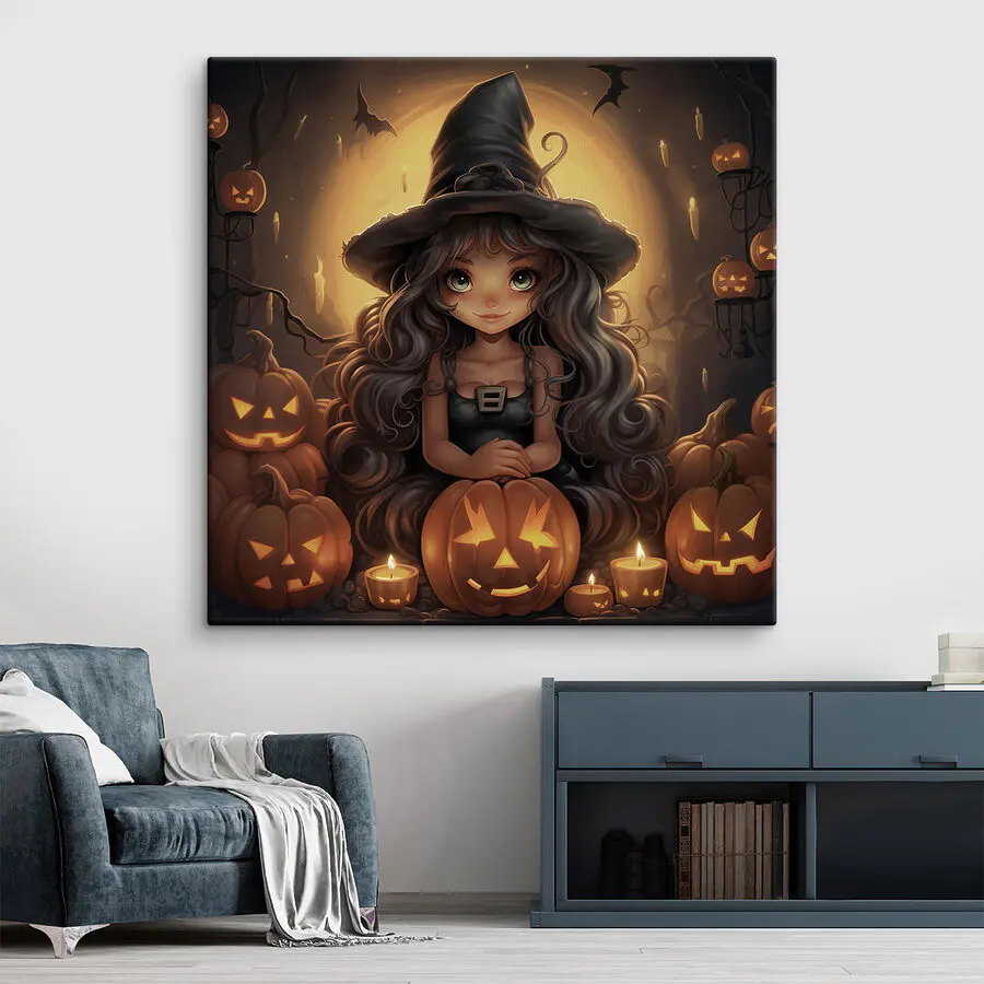 Tableaux Dessin humoristique d’une personne assise sur une citrouille