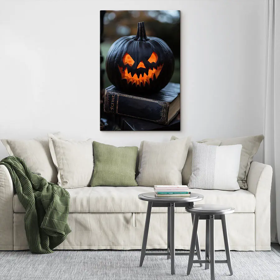 Cette toile n'a-t-elle pas quelque chose de particulier ? Elle s'appelle "Citrouille sculptée sur un livre", ce qui en dit long sur son histoire, sauf qu'elle n'est pas tout à fait comme les autres. Imaginez cette merveille en noir et blanc accrochée dans votre coin lecture. Une citrouille sculptée perchée sur un livre mystérieux, c'est une scène tout droit sortie d'un livre d'histoires, et c'est ce qui fait son charme. Parfait pour les amateurs d'Halloween ou pour tous ceux qui apprécient une touche d'effroi ludique. Elle évoque les fraîches nuits d'automne et un peu d'espièglerie. De quoi alimenter les conversations, à coup sûr !