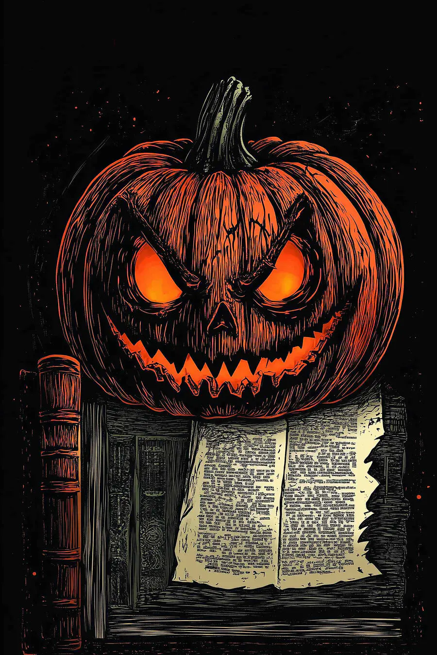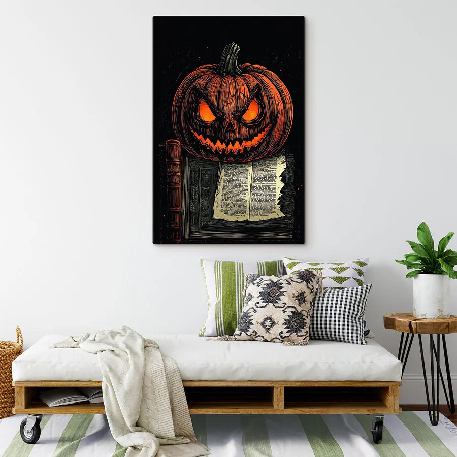 Tableaux Citrouille avec un visage sur un livre