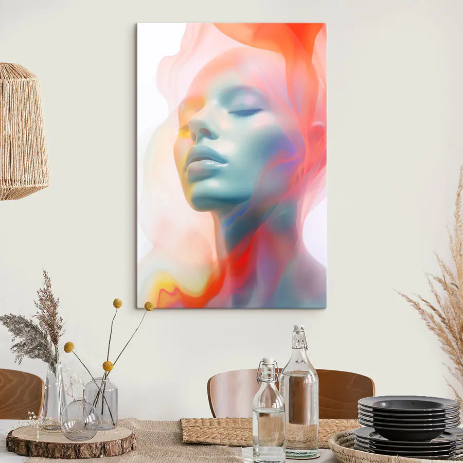 Cette superbe impression sur toile représente une femme dont le visage est magnifiquement voilé par un tissu coloré et fluide. C'est comme si elle était prise dans un tourbillon de couleurs qui dansent autour d'elle, invitant à la curiosité et à l'émerveillement. Imaginez cette pièce accrochée dans un coin confortable, où les couleurs vibrantes illuminent les matinées fraîches et les après-midi paresseux. C'est un objet parfait pour engager la conversation : les invités pourraient se perdre dans ses différentes couches, réfléchissant aux histoires qui se cachent derrière cette expression sereine. Qu'il s'agisse d'une source d'inspiration dans un bureau à domicile ou d'un point focal apaisant dans un salon, cette œuvre d'art apporte un mélange unique d'esprit et de flair artistique. Parfait pour ajouter une touche d'extraordinaire à la vie de tous les jours !