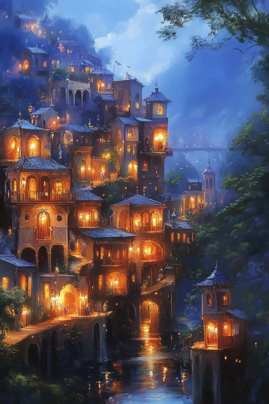 25.92 €14.26 €Tableaux Une aquarelle représentant une ville avec une tour d’horloge et une rivière