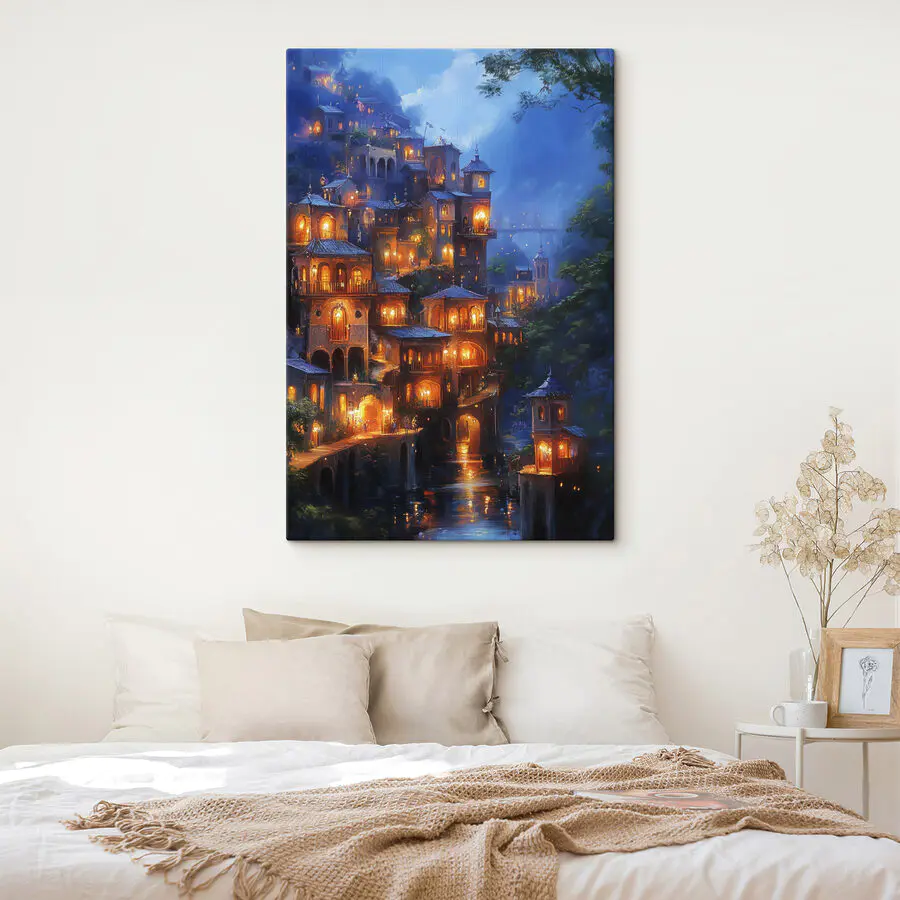 Tableaux Bâtiments éclairés sur une colline