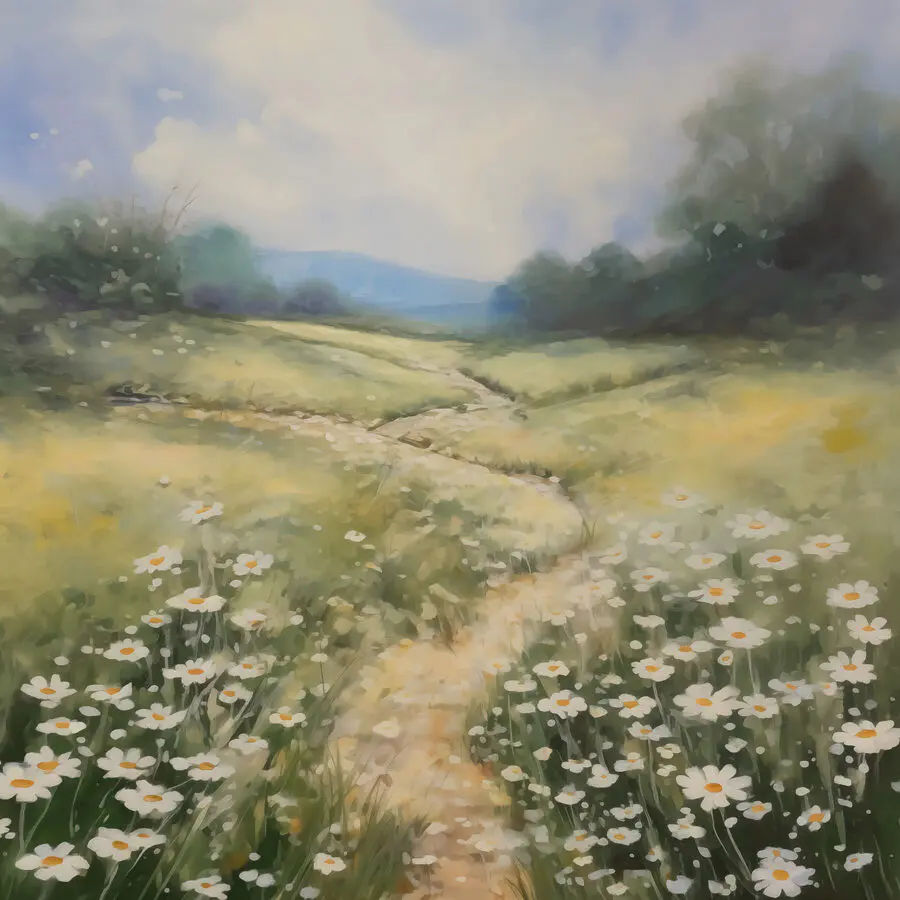 Tableaux Peinture d’un chemin dans un champ de fleurs
