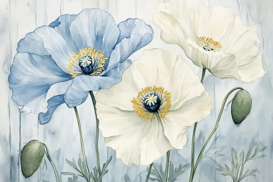 Tableaux Peinture de fleurs sur fond bleu