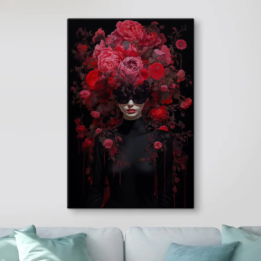 Tableaux Femme portant un masque avec des fleurs sur la tête