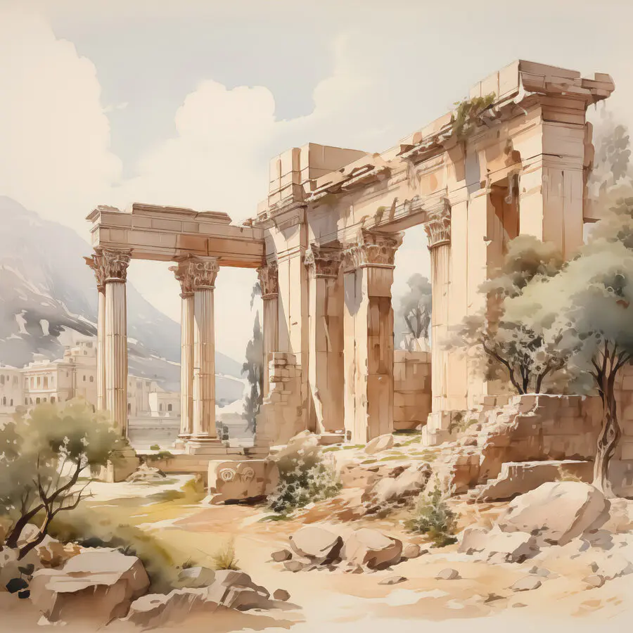 Tableaux Peinture d’un bâtiment en pierre avec des colonnes