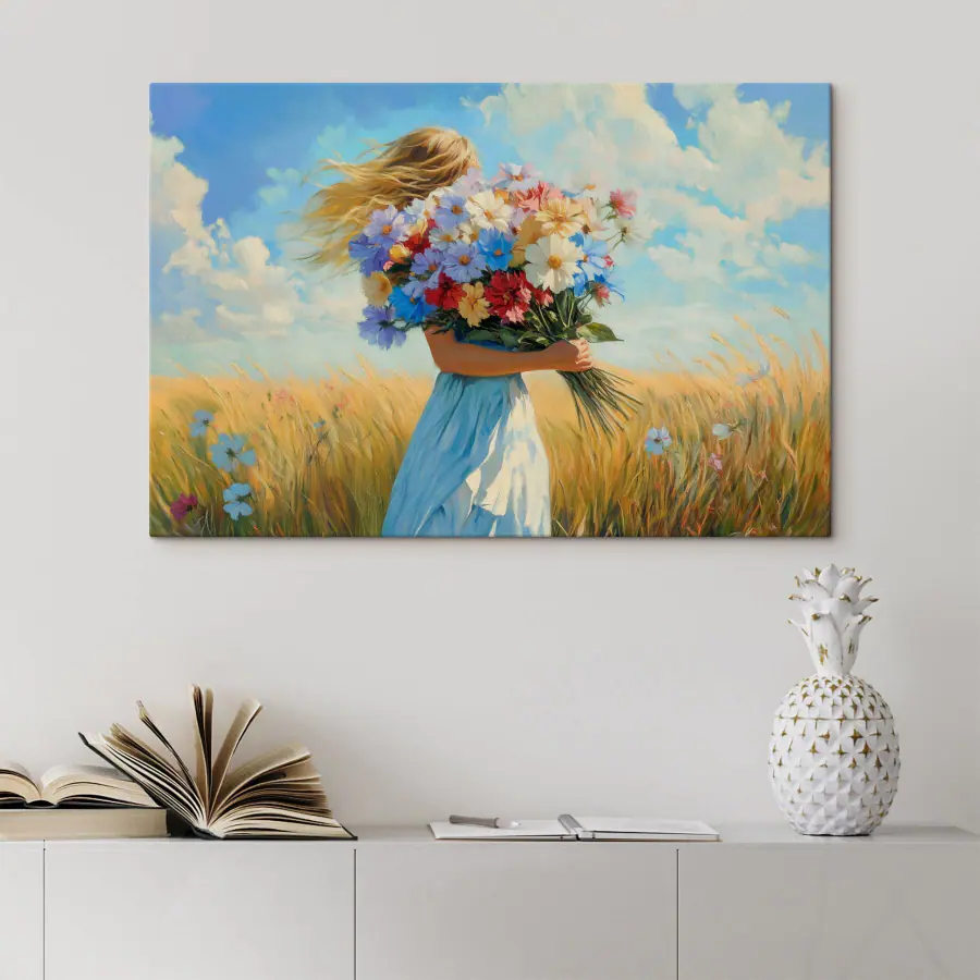 Tableaux Femme tenant un bouquet de fleurs