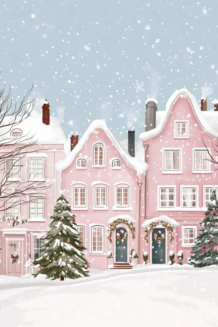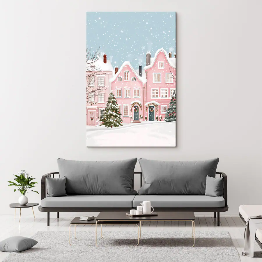 Tableaux Maison rose avec de la neige