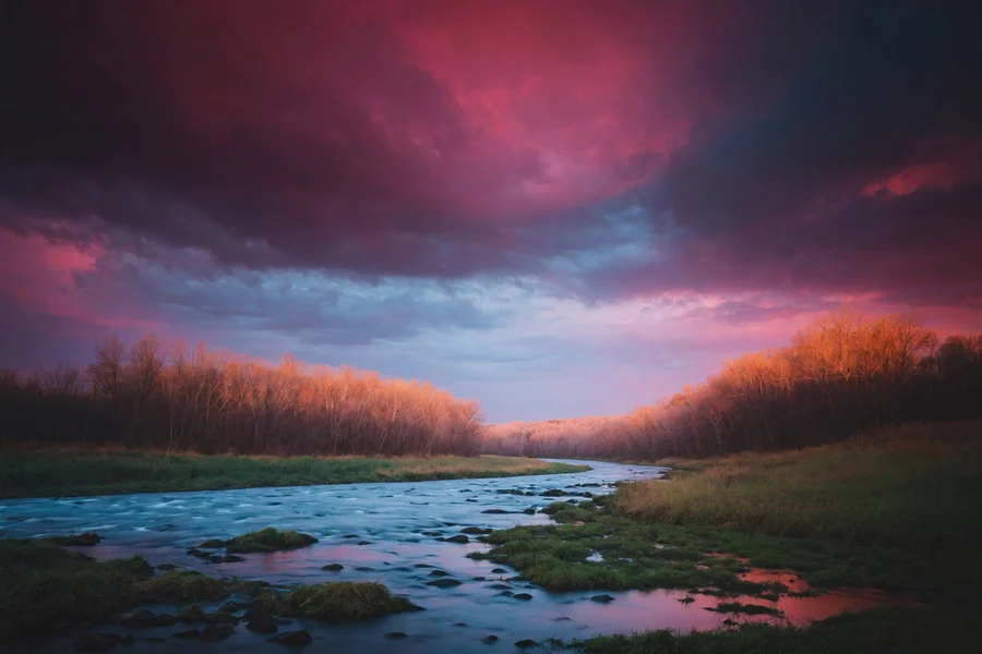 Tableaux Rivière traversant une forêt