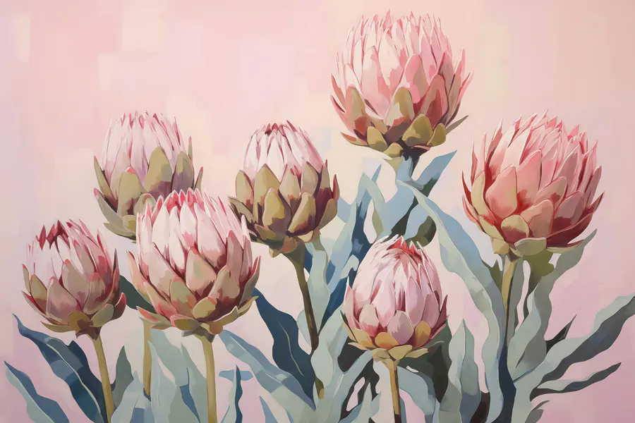 Tableaux Peinture de fleurs sur fond rose